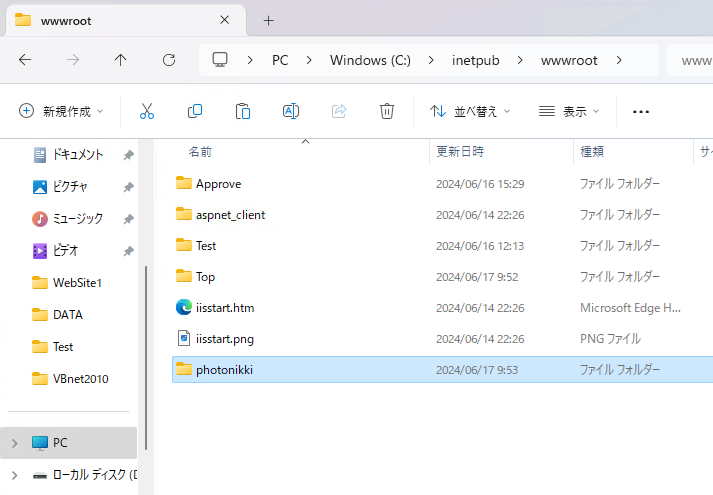 置換が済んだら、ホルダー事まとめて、「C:\inetpub\wwwroot」にコピーします。