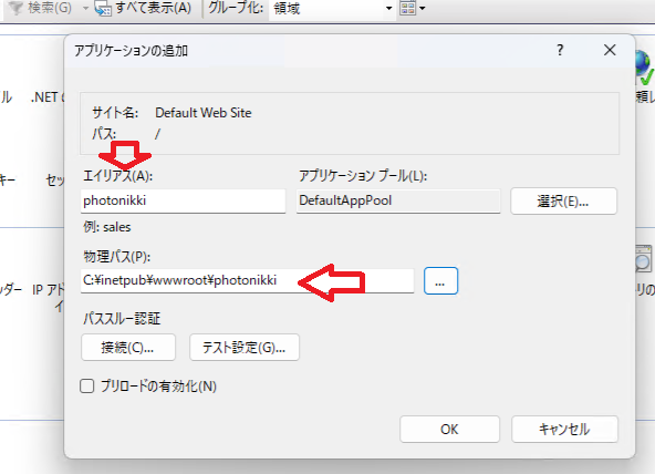 アプリケーションの追加では、エイリアスに「photonikki」をいれ、「物理パス」にphotonikki までのパスを示してください。
