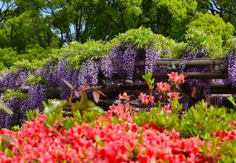 今日も小春日和で、皇帝ダリアが青空に映えます。