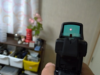 まず、動作原理はこうだ。マイクロプロサイト内にレーザーポインターがある。それが、ポリカーボネイトのスクリーンに照射される。レーザー光線が、ターゲットに照射される訳ではない。あくまでも、マイクロプロサイトの小さなスクリーン上だけの話だ。スクリーンは、半透明なので、5m先のターゲットも透けて見える。重ね合った点が、距離とそれに見合う着弾のポイントになる。そのポリカーボネイト上のレーザーの反射光が、位置が近くなのに眼鏡をかけた目にちゃんと見えるのかという疑問だ。知りたい疑問だが、その答えば、YouTubeでは、探せなかった。だが、考えてみれば、ポイントで使われるのは、レーザー光線だ。ピントなどと言う概念は、そんなに厳密に考えなくても良いかも知れない。遠くても近くでも、大きさが変わらないレザー光線なのだから、目が近くを見てれば、近くに、目が遠くを見れば、遠くに感じられるのが、正解かも知れない。これは、試すしかない。