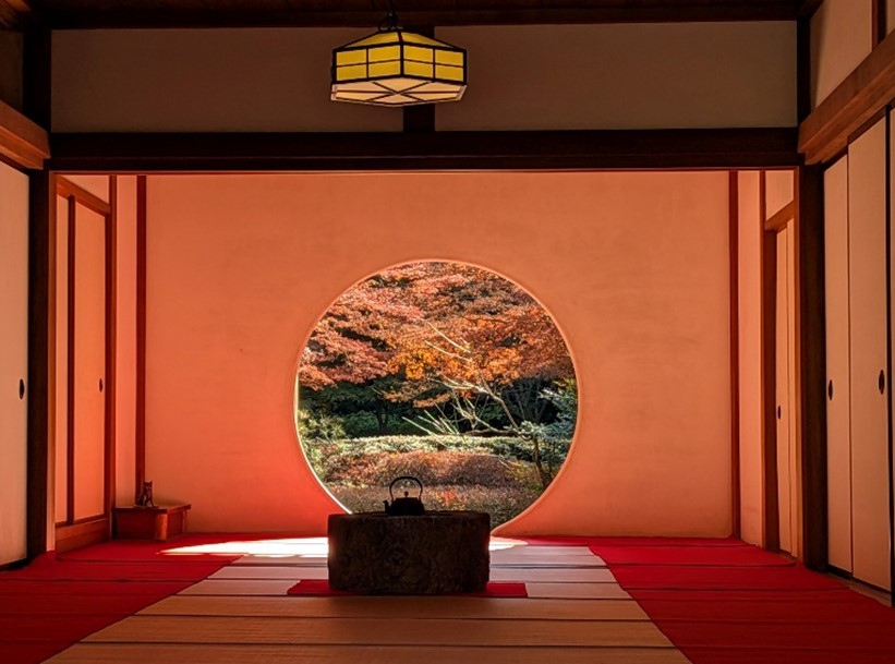 この日は寒波到来で今年一番の寒さとの予報、皆さん防寒の装いで北鎌倉駅に集合しました。しかし予想に反し日差したっぷりの快適な散策日和、まずは東慶寺に向かいました。 東慶寺は1285年に北条時宗の妻・覚山尼(後醍醐天皇の皇女)が創建した臨済宗のお寺です。 覚山尼は、「寺に駆け込んだ妻が足掛け3年すれば離縁できる」という「縁切り寺法」を定めたといわれ、以来「駆込み寺」「縁切り寺」として知られています。 以前は拝観料を取っていましたが、住職が変わったためか、現在は無料で拝観できます。 その一方、「駆込み寺」であったことを示す三行半(みくだりはん)の離縁状、寺の沿革資料などを展示した「松ヶ岡宝物館」は残念ながら閉鎖されており、今後も展示の予定はないとのこと、トップの交代による方針変更はどの組織でも起きるものですね。 宝物館背後のイチョウは見事に黄葉していました。参道を進んだ墓地周辺には、見上げれば頭上を覆うばかりのモミジが点在し、まだ緑の残る葉や黄色・紅色の葉の色合いが日差しに照り映えていました。 次の明月院に向かう途中では、道端のイチョウが落葉し、路とその横を流れる小川一面を覆い、ありきたりですが、まるで黄色の絨毯のようでした。 明月院はあじさいの名所として知られ、“あじさい寺”という愛称でも親しまれています。皆さん紅葉の季節に訪れるのは初めてでした。本堂に設けられた“悟りの窓”と呼ばれる円窓からの景色は、鎌倉を代表する絶景と言われています。この時期はその円窓の向こうにある本堂後庭園も季節限定公開されています。まず円窓の写真を撮った後、その庭園を散策し、集合写真を撮りました。円窓からは庭園内を散策する人は見えないように工夫されているようです。 帰路、鎌倉ガイド協会の小杉さん推奨の北鎌倉駅東側にある円覚寺山門の紅葉を楽しみ、有志は大船駅近くでの忘年会に向かいました。