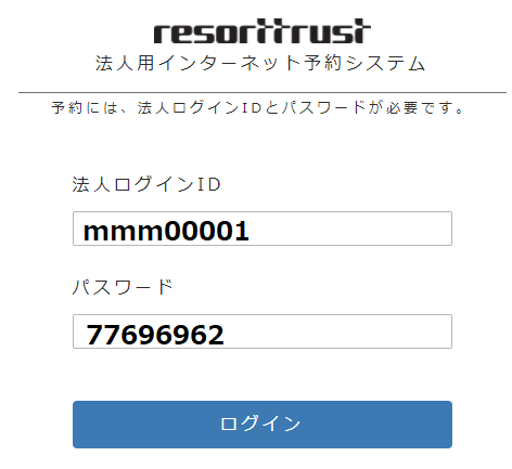 リゾートトラスト 法人用インターネット予約システムにアクセス