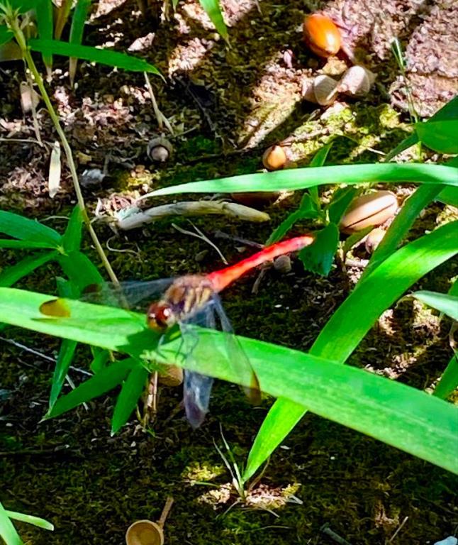 公園で小さい秋=赤トンボとどんぐりを見つけた。