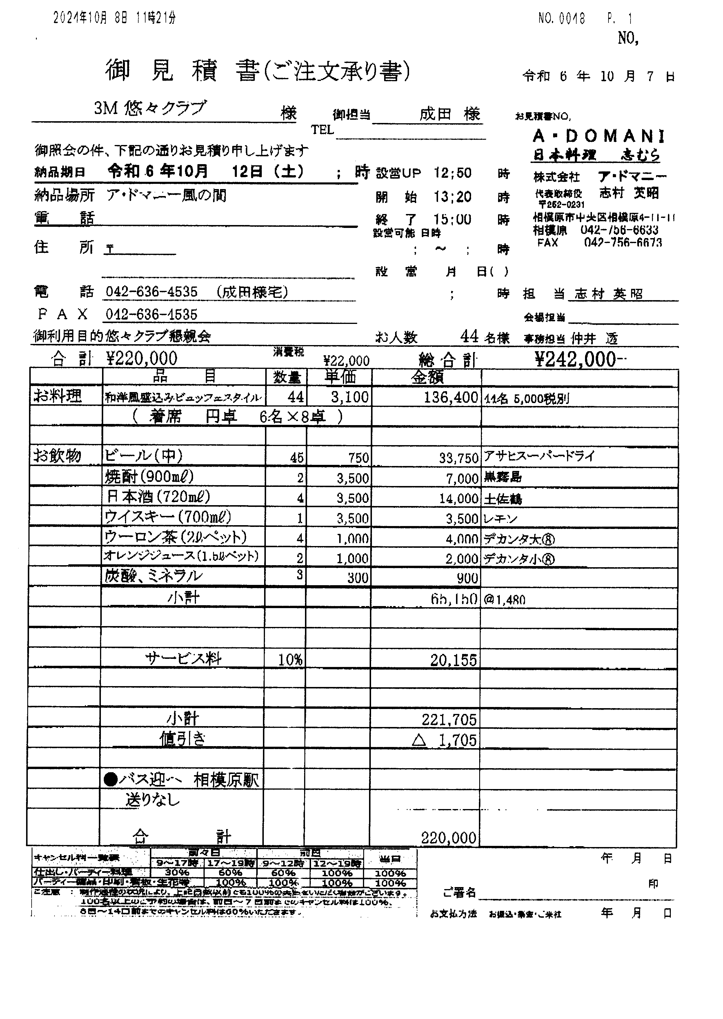 ア・ドマニーの見積もり